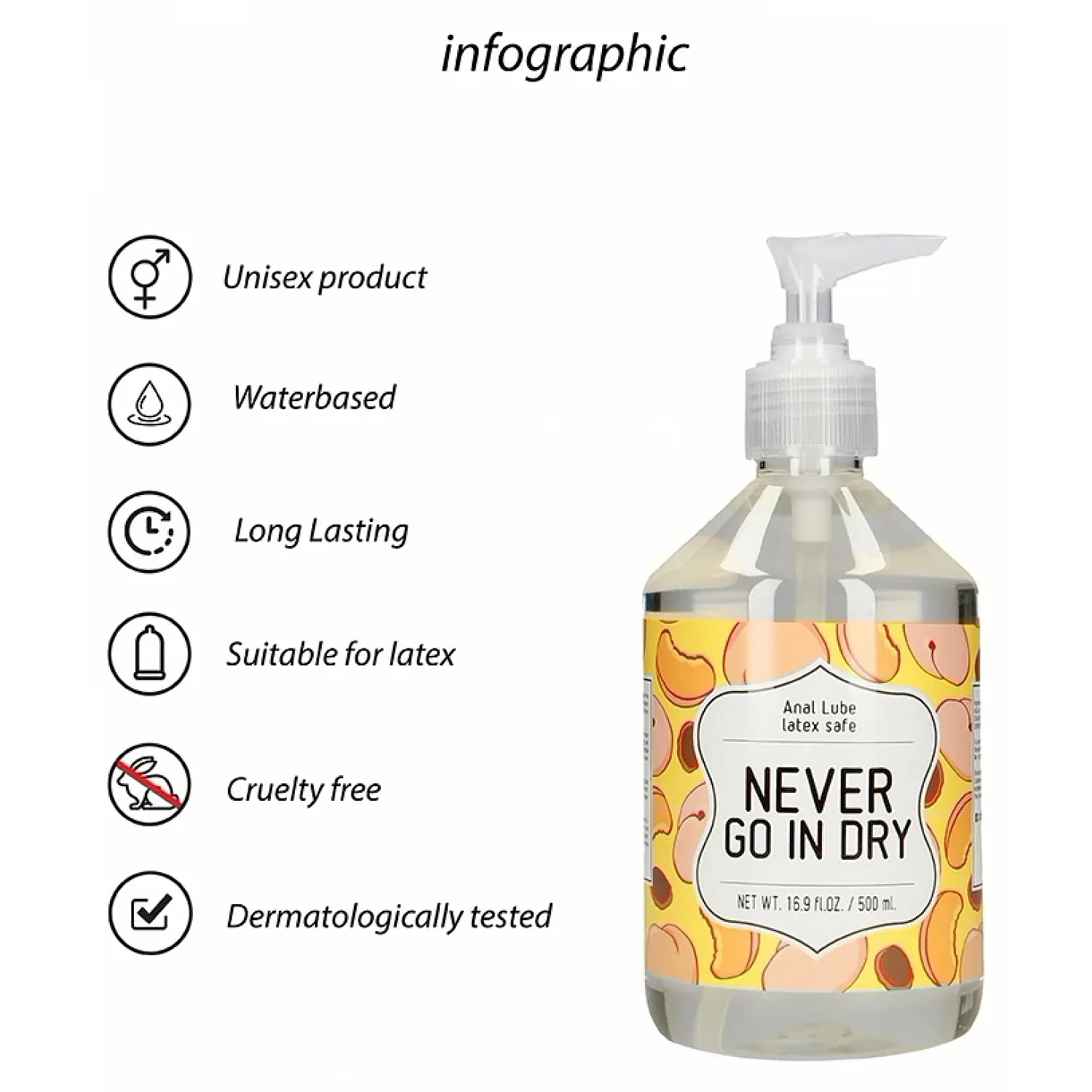 Lubrifiant Anal pe Bază de Apă Never Go In Dry 500 ml