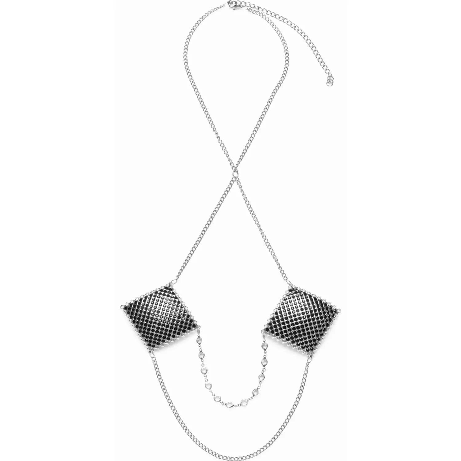 Stickere Sâni Pătrate Argintii cu Lanț și Cristale