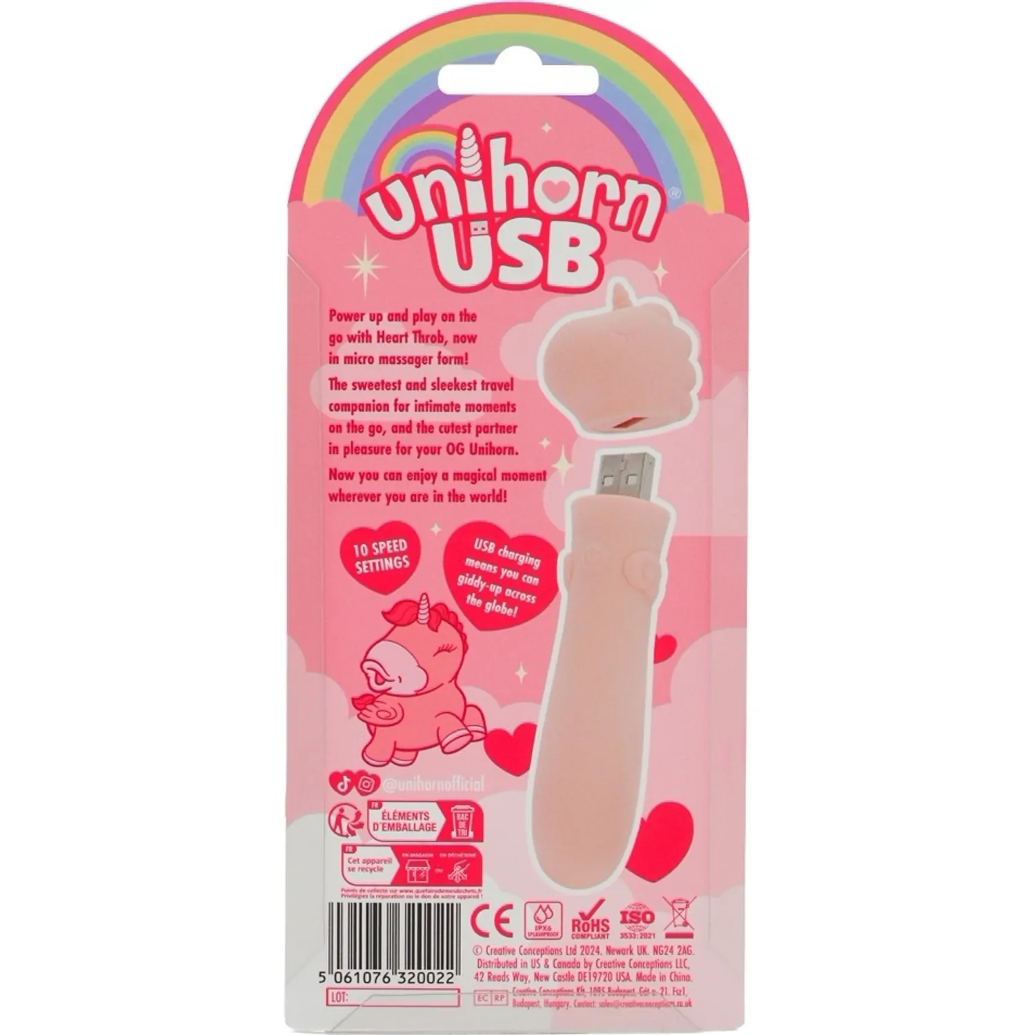 Unihorn Mini Vibrator USB 10 Moduri, Reîncărcabil 14.3 cm