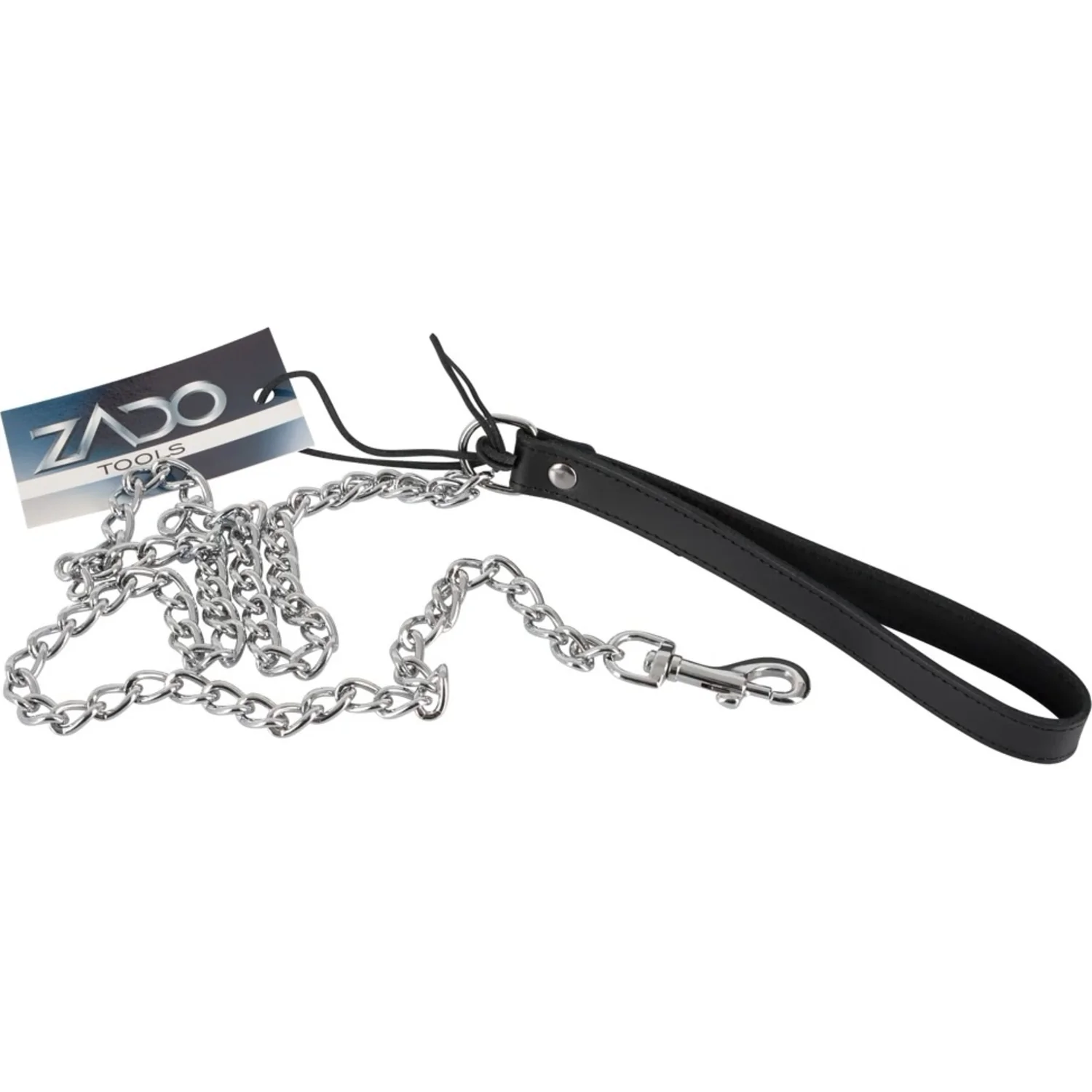 Lesă Metalică Mâner Piele Negru